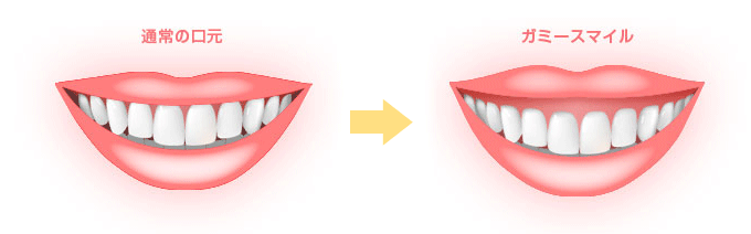 笑った時に歯茎の幅の見える範囲が3ミリ以上ある状態を「ガミースマイル」と言います。歯並びを気にする方も多いですが、このガミースマイルを気にしている方も少なくありません。