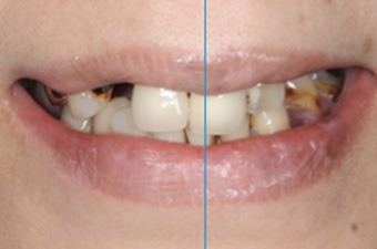 正中線とは、顔の真ん中のラインのことを言いますが、上の前歯の真ん中のラインを正中線に合わせることでバランスが取れた歯並びになります。